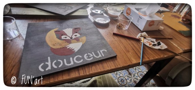 Le prix est de 40€ par personne (matériel nécessaire à la réalisation du jour compris). Nous allons personnaliser une planche en bois lors e l’atelier, avec la peinture que vous aurez créée.