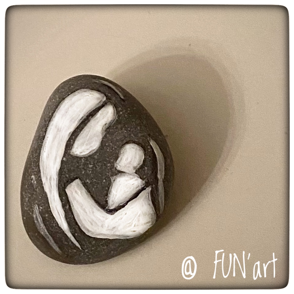 Lors d’un atelier en duo vous travaillez ensemble sur vos galets, une collaboration complice qui crée de beaux souvenirs en famille.