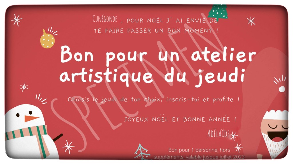 Un bon pour un atelier créatif, un bon pour un atelier artistique ou un abonnement aux ateliers artistiques…